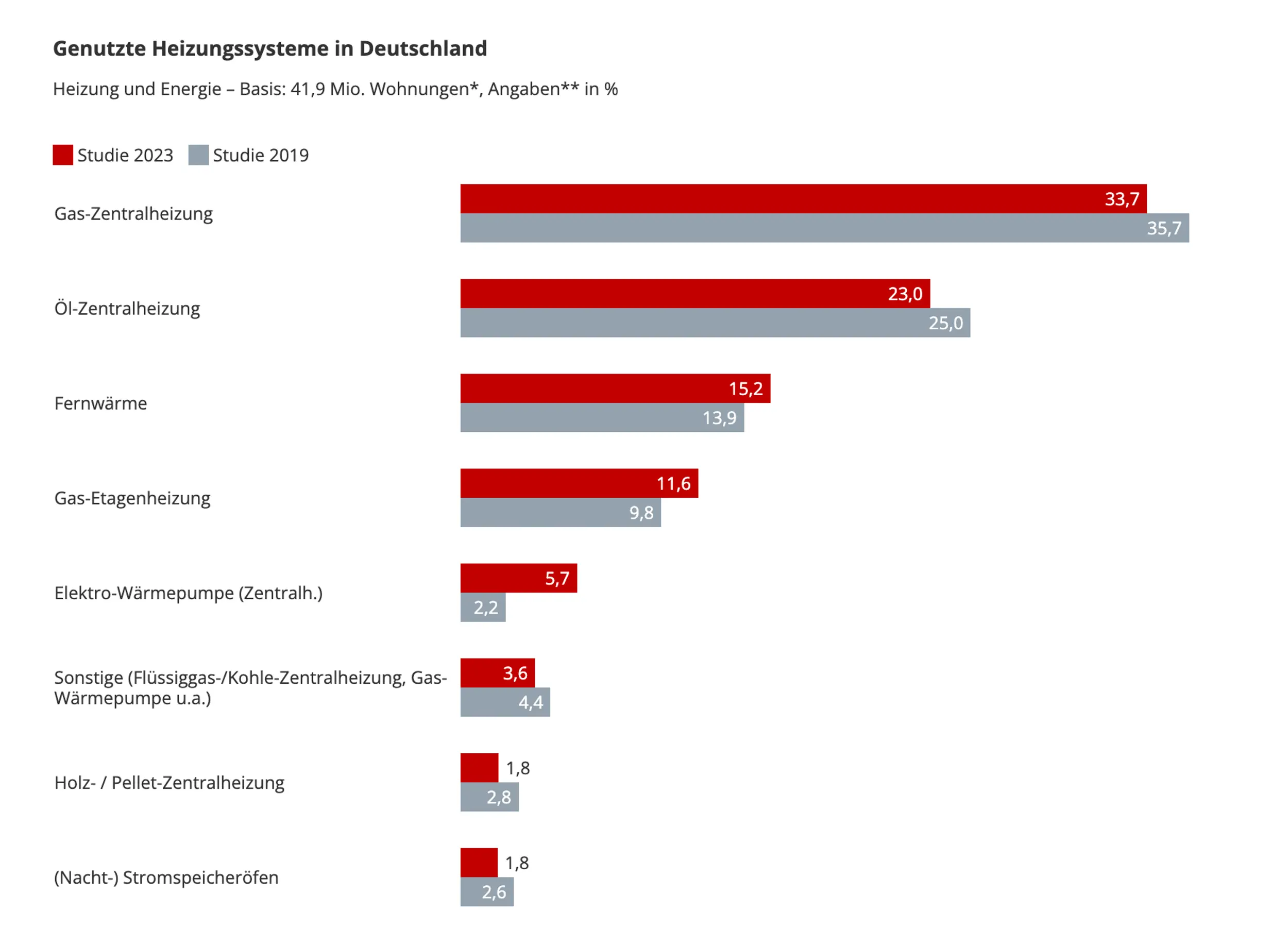 ** Dargestellt sind nur die relevantesten Heizungssysteme, daher keine Summenbildung auf 100 %.