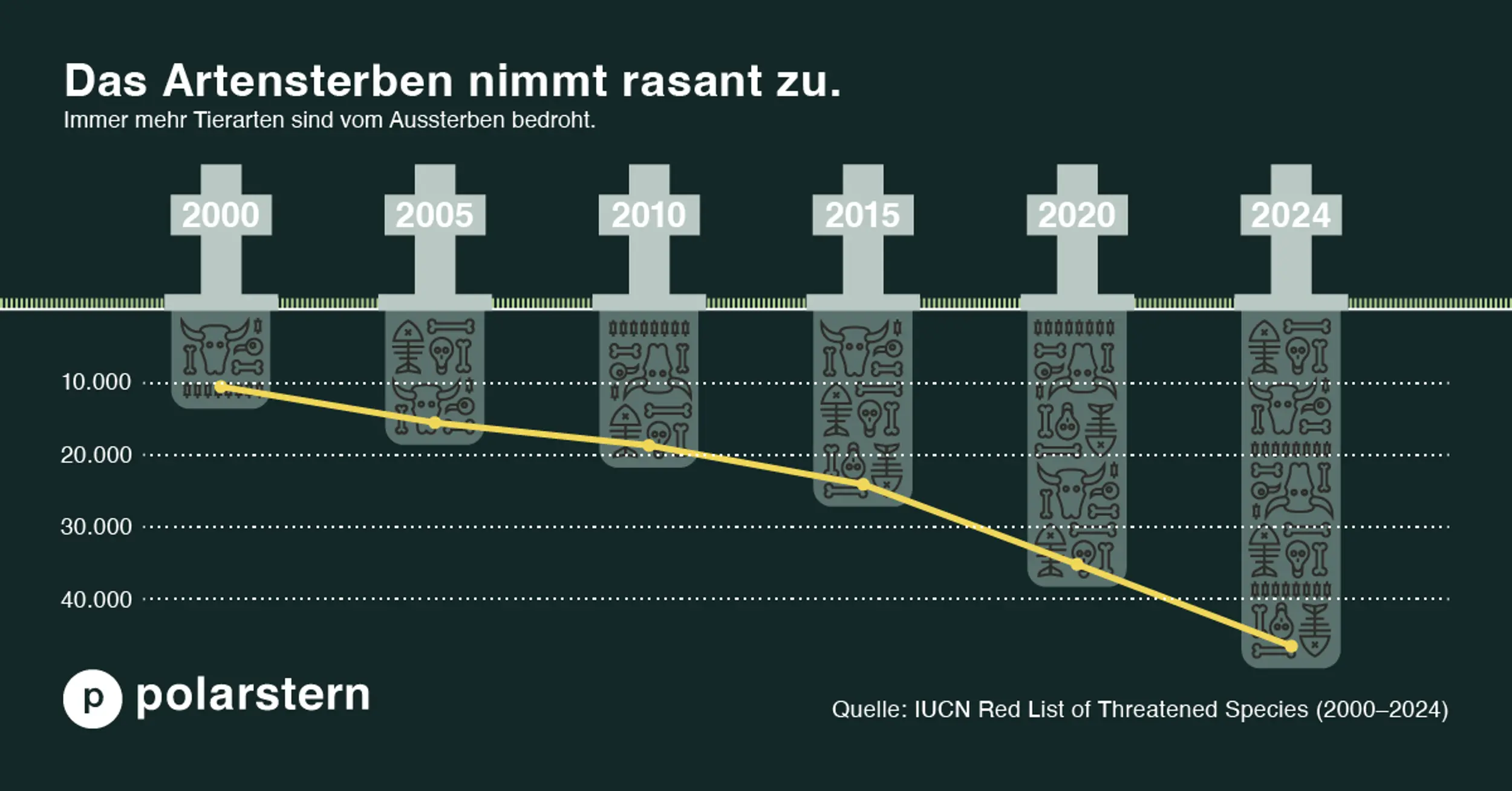 Wer beim Schutz der biologischen Vielfalt an irgendeine Benefizveranstaltung für seltene Wühlmäuse denkt, hat den Ernst der Lage kaum begriffen. Schwinden die Tiere, steht unsere eigene Lebensmittelversorgung auf dem Spiel. Allein ohne die Bestäubungsleistung von Insekten würde etwa ein Drittel der Nutzpflanzen verschwinden. Laut Vereinter Nationen sind weltweit rund 1 Million von 8 Millionen Tier- und Pflanzenarten vom Aussterben bedroht.