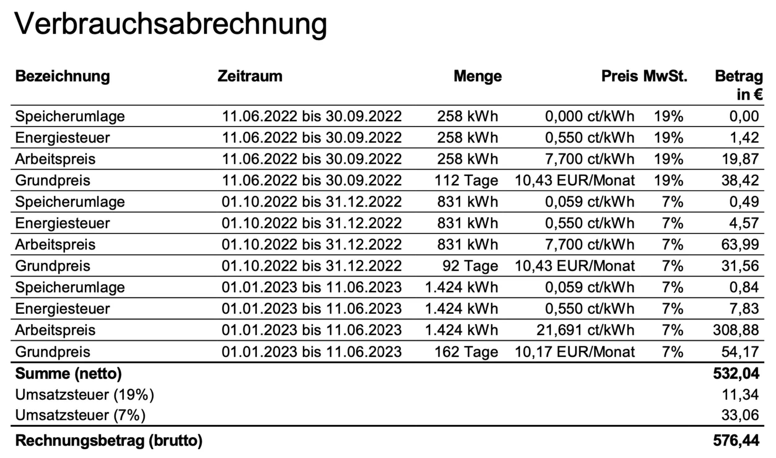Verbrauchsabrechnung.