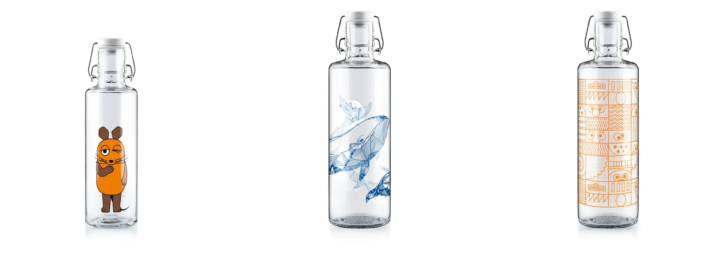 Im Polarstern-Büro hat jede:r Mitarbeiter:in eine nachhaltige Trinkflasche aus Glas von Soulbottles. Und wir lieben sie! Nicht nur wegen der plastikfreien Produktion aus recyceltem Glas und dem Deckel aus Keramik, sondern auch, weil jede Flasche Trinkwasserprojekte von Viva con Agua mitfinanziert. Neben Glasflaschen gibt es auch welche aus Edelstahl sowie personalisierbare Trinkflaschen. Schau im Soulbottles-Shop vorbei und finde Geschenke.