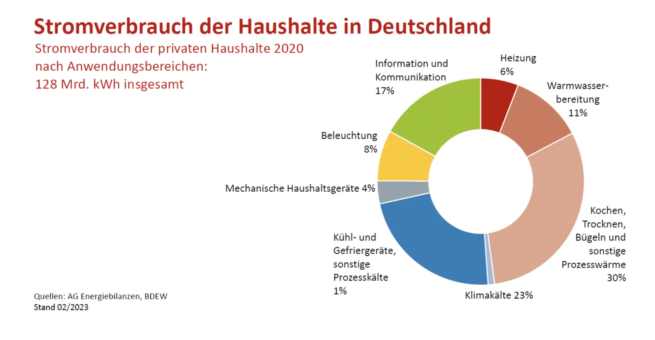 Wenn wir den Stromverbrauch im Haushalt betrachten, haben Informations- und Kommunikationstechnologien (IKT) übrigens einen Anteil von 17 %. Höher liegen nur Prozesswärme und Prozesskälte: