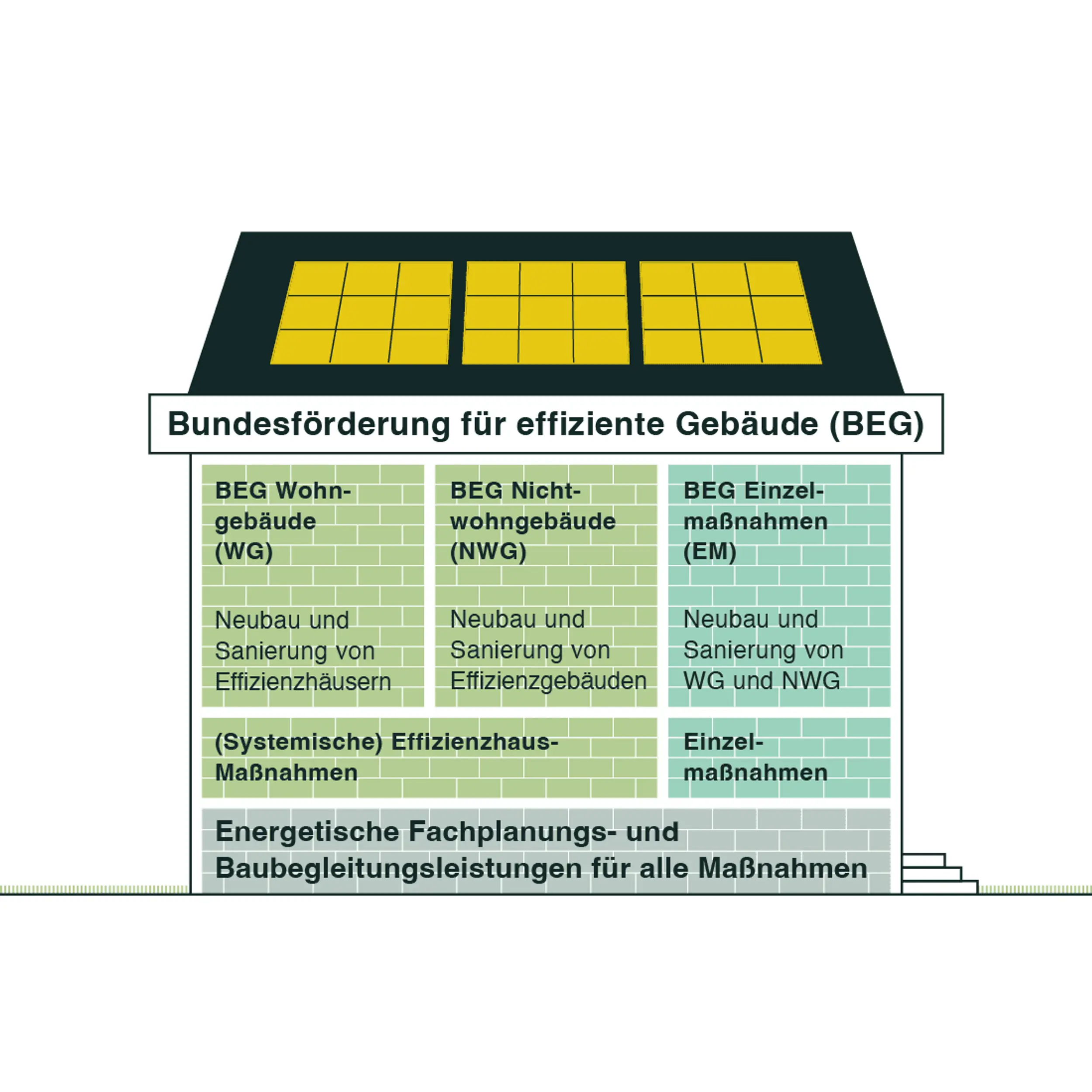 Mieterstrom ist ein Steigbügel für Förderungen von Effizienzhäusern. Die Förderungen werden aktuell nach der "Bundesförderung für effiziente Gebäude (BEG)" vergeben. Durch die Förderungen profitieren Investoren:innen und Bauträger:innen genauso wie Mieter:innen. Während die einen durch niedrige Zinsen und einen hohen Tilgungszuschuss ihre Investitionskosten senken, reduzieren die anderen ihre Energiekosten für Strom und Wärme.