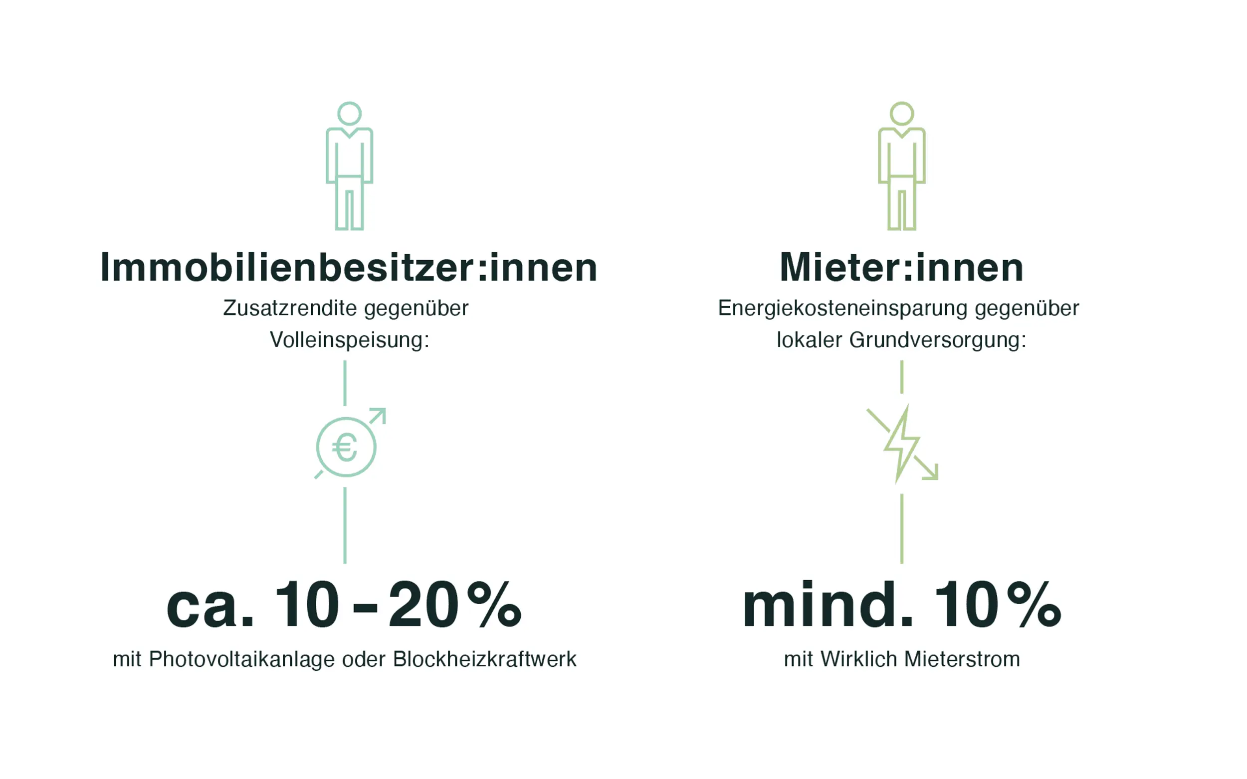 Das Mieterstrommodell kommt für Mehrfamilienhäuser ab etwa 15 Wohneinheiten in Frage. Besonders bei Neubauten, aber auch Bestandsgebäuden und Sanierungen ist das Mieterstrommodell sinnvoll. Wird das Dach ohnehin saniert oder die Heizung ausgetauscht, ist es besonders praktisch und wirtschaftlich spannend.