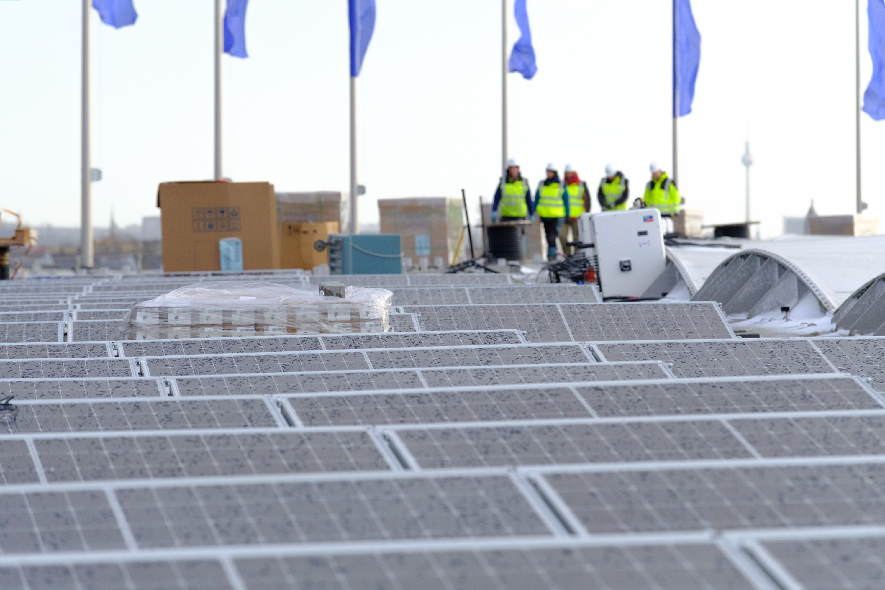 Solarstrom vom Dach des Olympiastadion Berlin.Ein PV-Projekt mit weltweiter Strahlkraft für die Energiewende und den Klimaschutz.