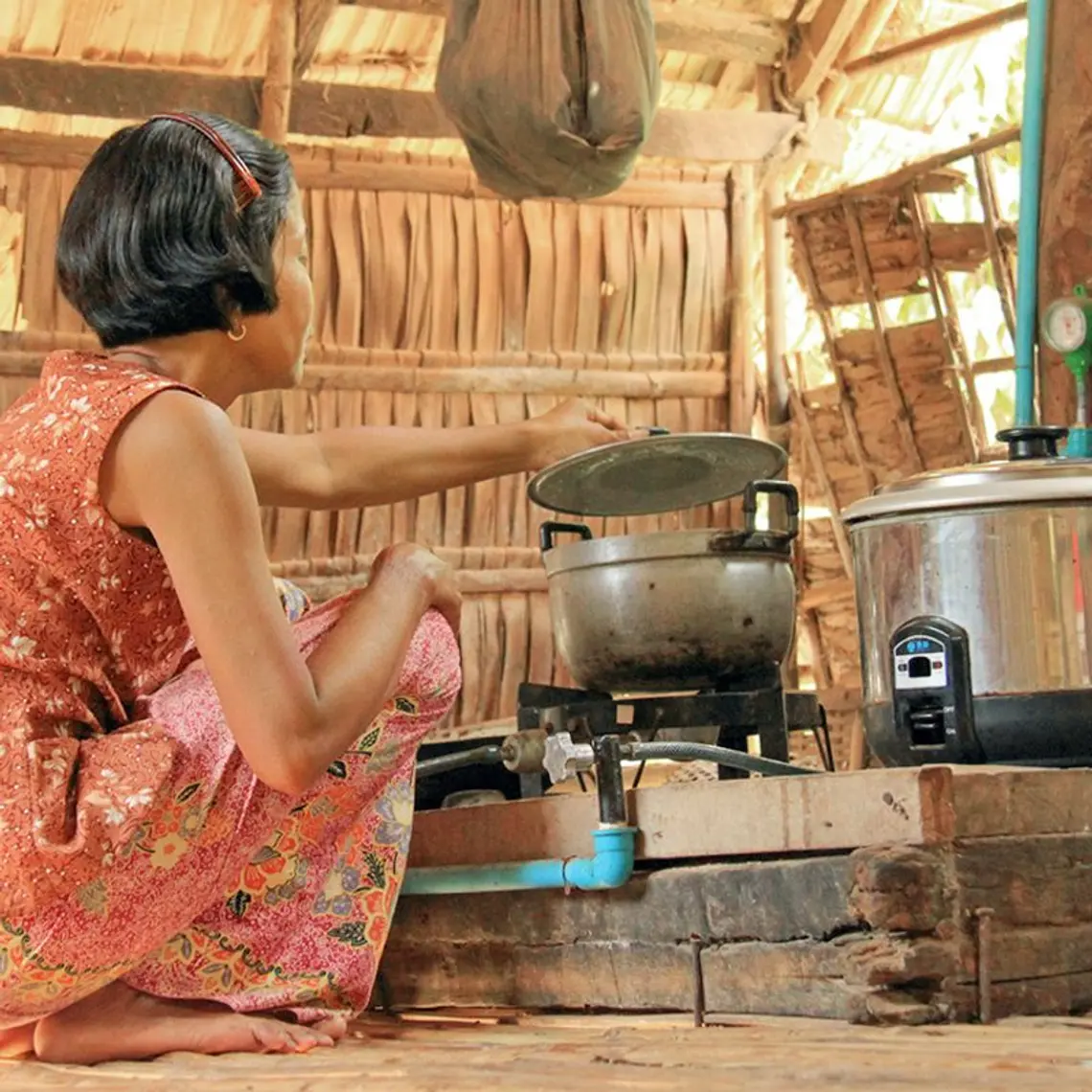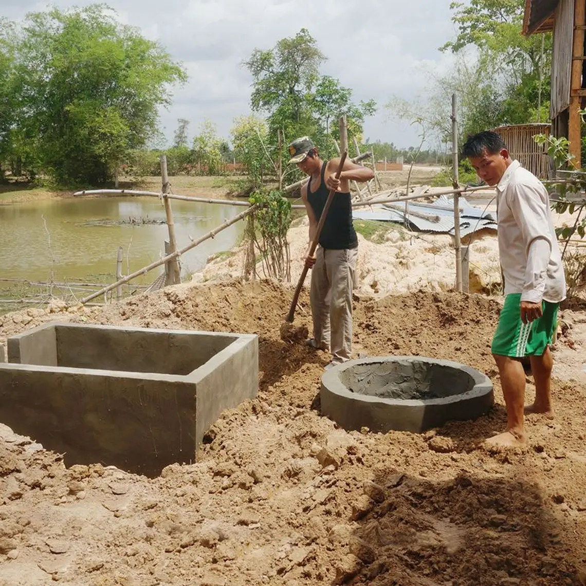 In Kambodscha unterstützt du über unseren lokalen Partner, dem National Biodigester Programme (NBP), den Bau von Mikro-Biogasanlagen für Familien. Die Anlagen liefern jeden Tag genügend Biogas, um damit einen Gasherd und Gaslampen zu betreiben. Als Biomasse wird Tiermist verwendet. Für den Bau erhalten die Familien von Polarstern eine Anschubfinanzierung, die etwa einem Viertel bis Drittel der benötigten Summe entspricht. Die restliche Finanzierung erbringen die Familien selbst, zum Teil über Mikrokredite lokaler Banken. Durch die eingesparten Kosten etwa für Feuerholz und durch die höheren Ernteerträge aufgrund des Biogasdüngers (ein Abfallprodukt der Biogaserzeugung) können die Familien die Mikrokredite meist innerhalb von 1,5 Jahren zurückzahlen.